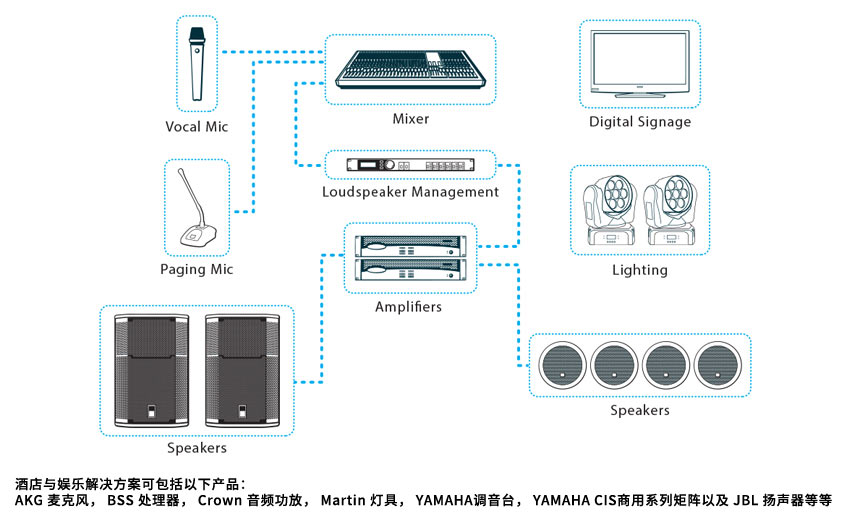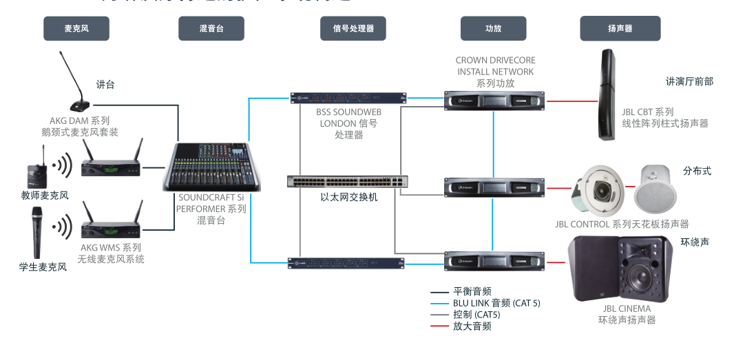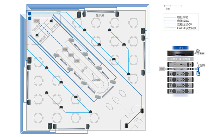 公共广播音响系统是一项系统工程,它需要电子技术、电声技术、建声技术和声学艺术等多种学科的密切配合,公共广播系统的音响效果不仅与电声系统的综合性能有关,还与声音的传播环境建筑声学和现场调音使用密切相关,所以公共广播系统最终效果需要正确合理的电声系统设计和调试、良好的声音传播条件和正确的现场调音技术三者最佳的配合,三者相辅相成缺一不可。在公共广播系统设计中必须综合考虑上述问题,在选择性能良好的电声设备基础上,通过周密的系统设计,仔细的系统调试和良好的建声条件,达到电声悦耳、自然的音响效果。中广电公司拥有丰富的扩声系统工程经验,在公共广播音响系统设计过程中,中广电公司会根据客户环境和客户需求,运用扩声先进理念,设计出具有先进性与扩展性的公共广播音响系统,系统具有操作简便,音质优越,可区域独立、统一播放或插播等特点。
