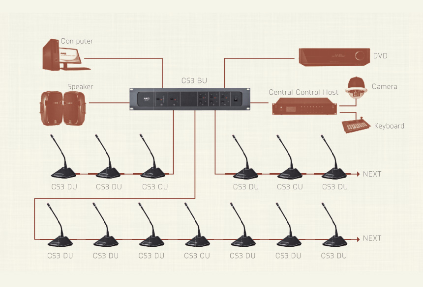 另外还可以根据需要选配摄像头、电脑主机录制会议过程,以及配置视频会议系统